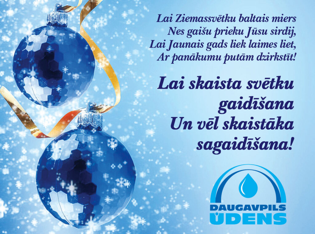 Lai savlaicīgi apstrādātu datus par veiktajiem maksājumiem, ņemot vērā garās brīvdienas decembra beigās, SIA “Daugavpils ūdens” lūdz klientus rast iespēju apmaksāt saņemtos rēķinus par š.g. novembri līdz 22.12.2025. Sk. SIA “Daugavpils ūdens” rekvizītus